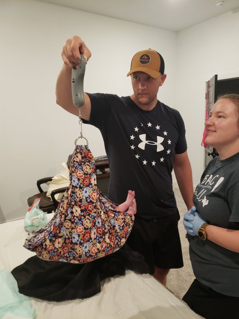 Now, if anything makes homebirth completely worth it, it is the postpartum. I was bleeding quite a bit, so I did opt for a shot of pitocin. I didn’t want to risk having to go to the hospital. We also did fundal massage, which absolutely does not feel good, but it helps bleeding slow down. I want to make note that hospitals practice fundal massage way too much. It should only be done directly postpartum if bleeding is an issue and not for days afterward. Too much of it can cause heavier bleeding. We got to do *actual* delayed cord clamping. Belle’s umbilical cord was not cut until the placenta was out. She latched beautifully and we got to wait to do her exam.
